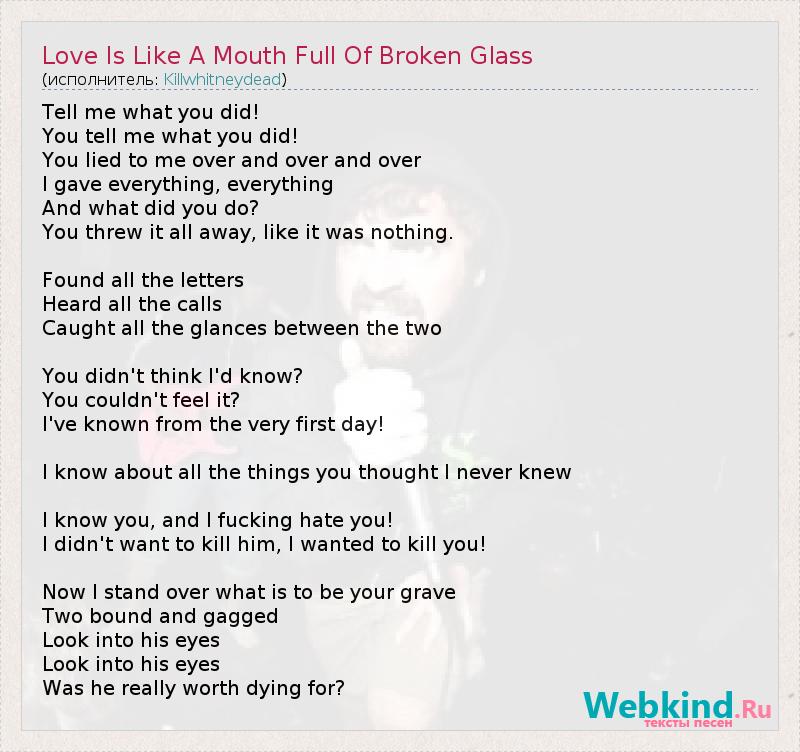 А как ты думаешь, о чем песня "Love Is Like A Mouth Full Of Broken Glass" ?