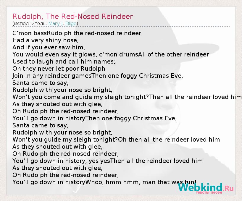 C'mon bassRudolph the red-nosed reindeer Had a very shiny nose, And if you ever saw him, You would even say it glows, c'mon drumsAll of the other reindeer Used to laugh and call him names; Oh they never let poor Rudolph Join in any reindeer gamesThen one foggy Christmas Eve, Santa came to say, Rudolph with your nose so bright, Won't you come and guide my sleigh tonight?Then all the reindeer loved him As they shouted out with glee, Oh Rudolph the red-nosed reindeer, You'll go down in historyThen one foggy Christmas Eve, Santa came to say, Rudolph with your nose so bright, Won't you guide my sleigh tonight?Oh then all the reindeer loved him As they shouted out with glee, Oh Rudolph the red-nosed reindeer, You'll go down in history, yes yesThen all the reindeer loved him As they shouted out with glee, Oh Rudolph the red-nosed reindeer, You'll go down in historyWhoo, hmm hmm, man that was fun!