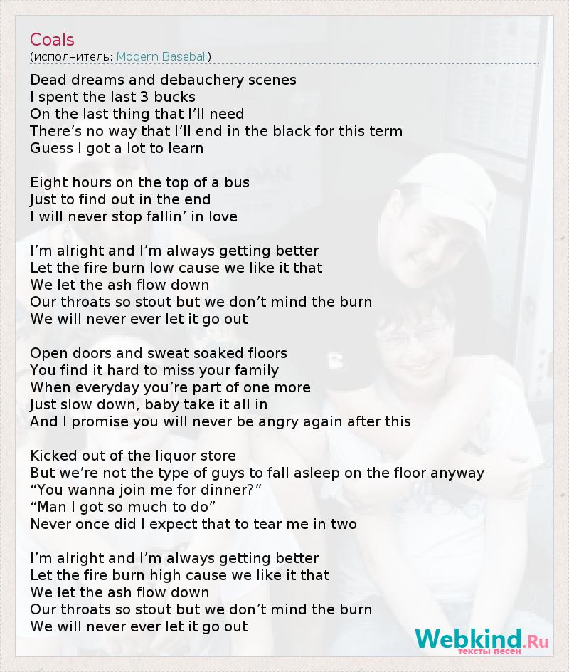 Это интересно:Modern Baseball is a band from Philadelphia that formed in 2011. Members include Brendan Lukens, Jake Ewald, Ian Farmer, and Sean Huber.Discography:'The Nameless Ranger' (2011)'Couples Therapy' split with Marietta (2012)'Sports' (2012)Bandcamp | Facebook | Merch... продолжение