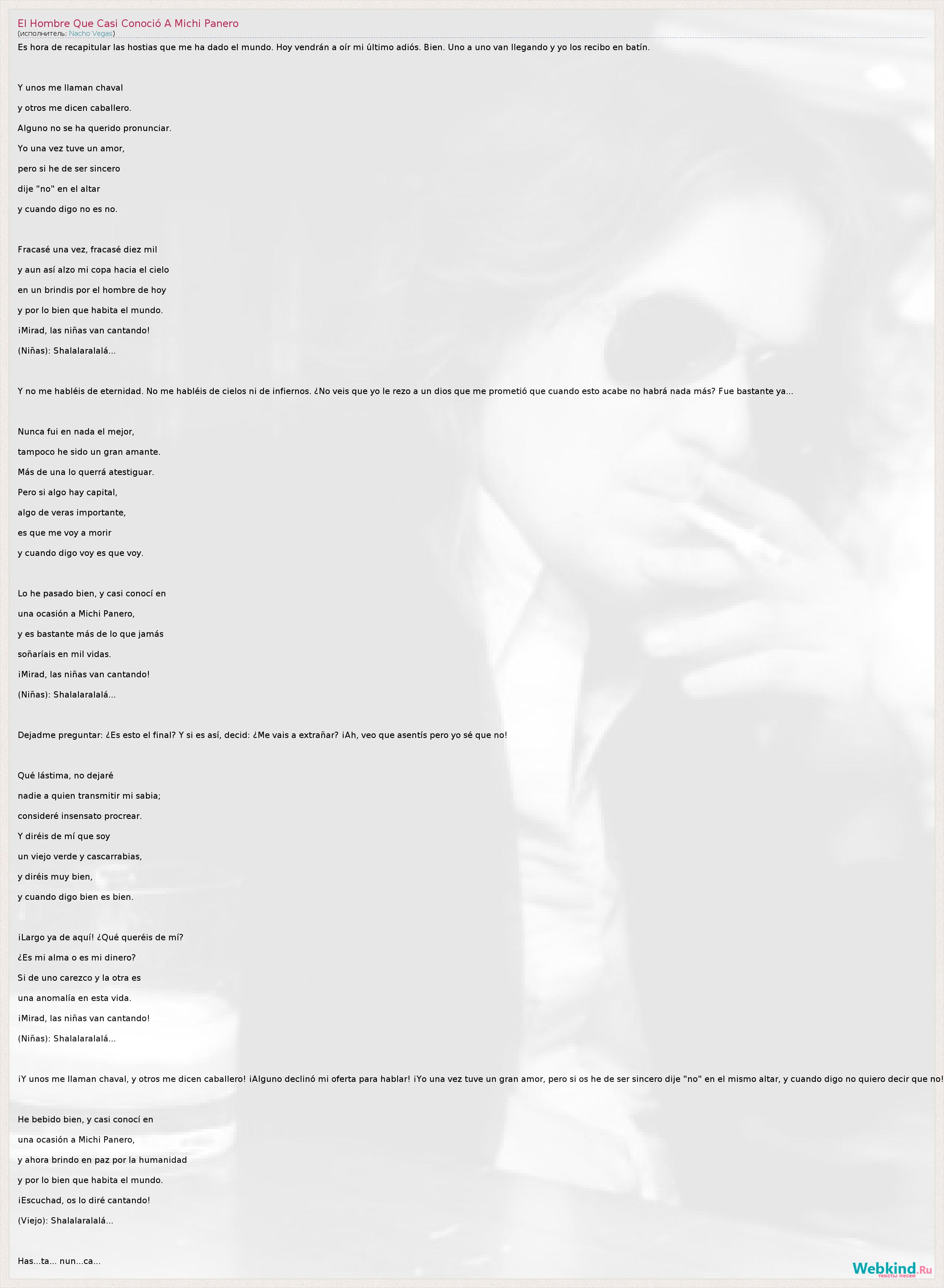 А как ты думаешь, о чем песня "El Hombre Que Casi Conoció A Michi Panero" ?