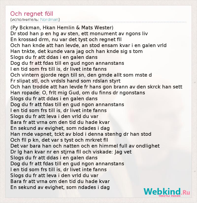 А как ты думаешь, о чем песня "Och regnet föll" ?
