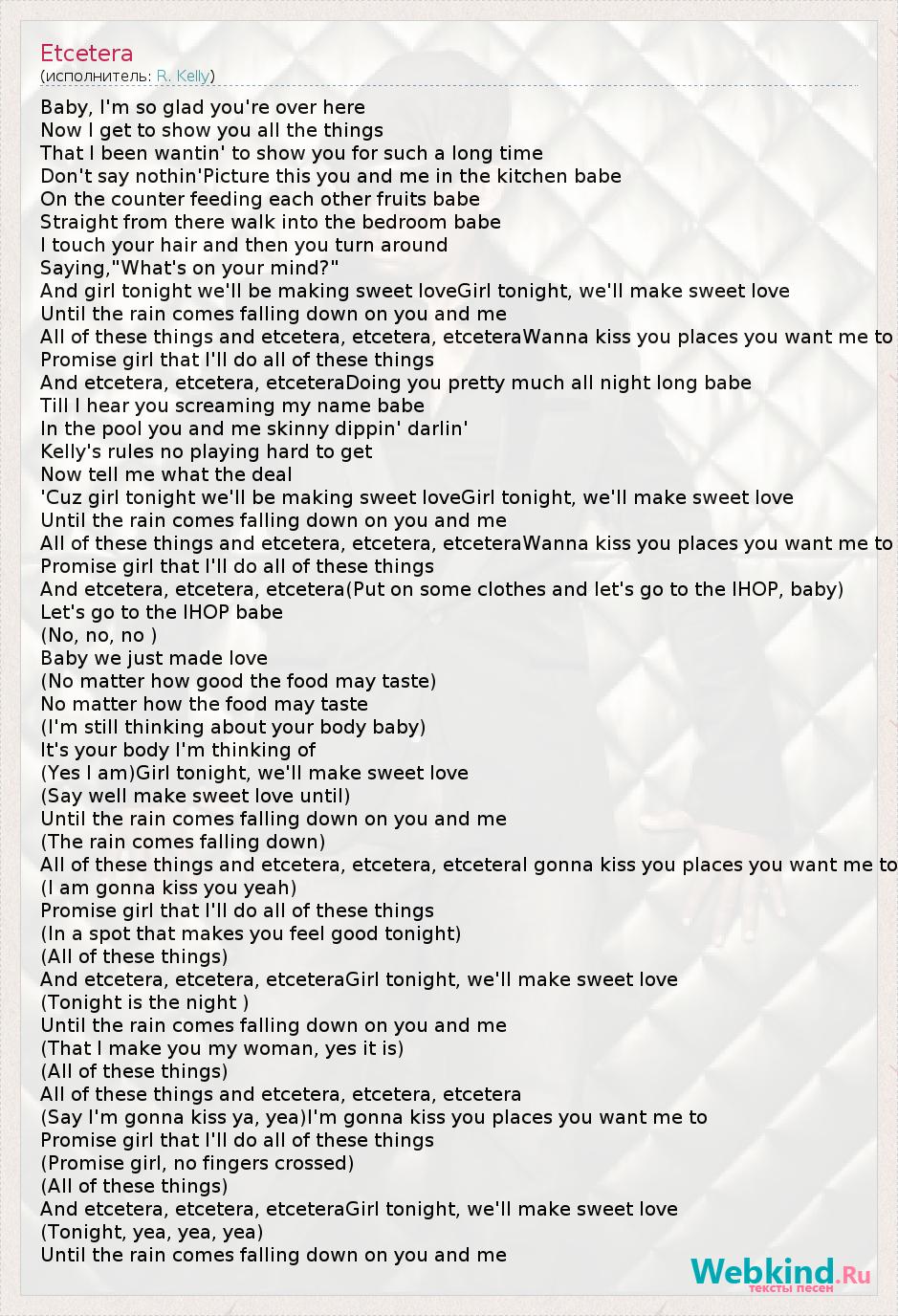 All of these things and etcetera, etcetera, etceteraI gonna kiss you places you want me to