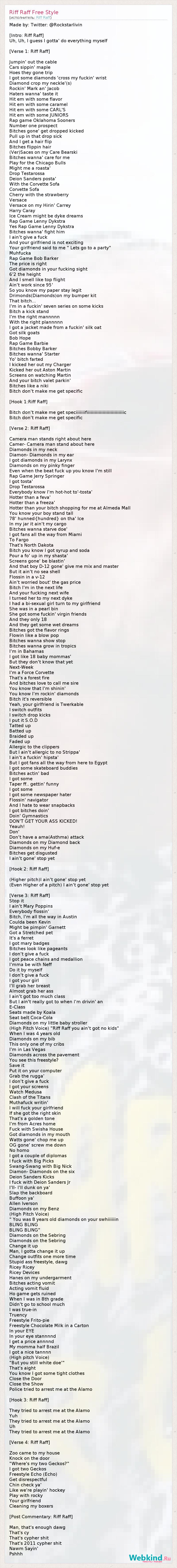 А как ты думаешь, о чем песня "Riff Raff Free Style" ?