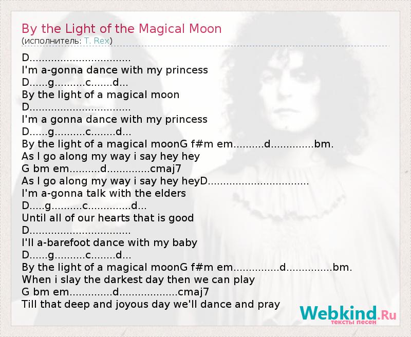 D................................. I'm a-gonna dance with my princess D......g..........c.......d... By the light of a magical moon D................................. I'm a gonna dance with my princess D......g..........c........d... By the light of a magical moonG f#m em..........d..............bm. As I go along my way i say hey hey G bm em..........d..............cmaj7 As I go along my way i say hey heyD................................. I'm a-gonna talk with the elders D.....g..........c..............d... Until all of our hearts that is good D................................. I'll a-barefoot dance with my baby D......g..........c........d... By the light of a magical moonG f#m em...............d...............bm. When i slay the darkest day then we can play G bm em..............d...................cmaj7 Till that deep and joyous day we'll dance and pray