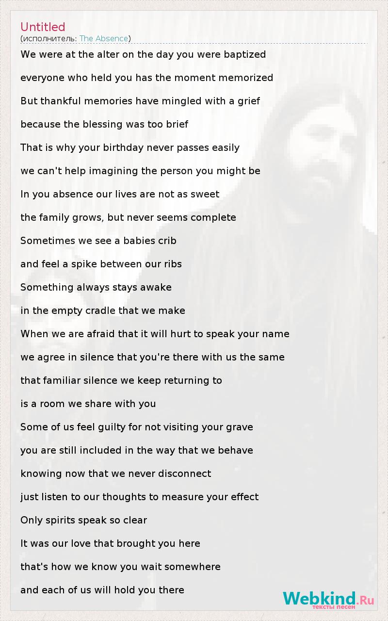 Это интересно:Новое приобретение лейбла “Metal Blade Records“, флоридская группа The Absence, записала 3 альбома. Коллектив играет музыку в стиле "Melodic Death-Metal".Дискография:2005 - From Your Grave2007 - Riders Of The Plague2010 - Enemy UnboundСостав :Джейми Стюарт - Вокал Патрик Пинтаволл - Гитара Питер Джозеф - Гитара Николас Калаки - Бас Джерими Клинк - Ударные