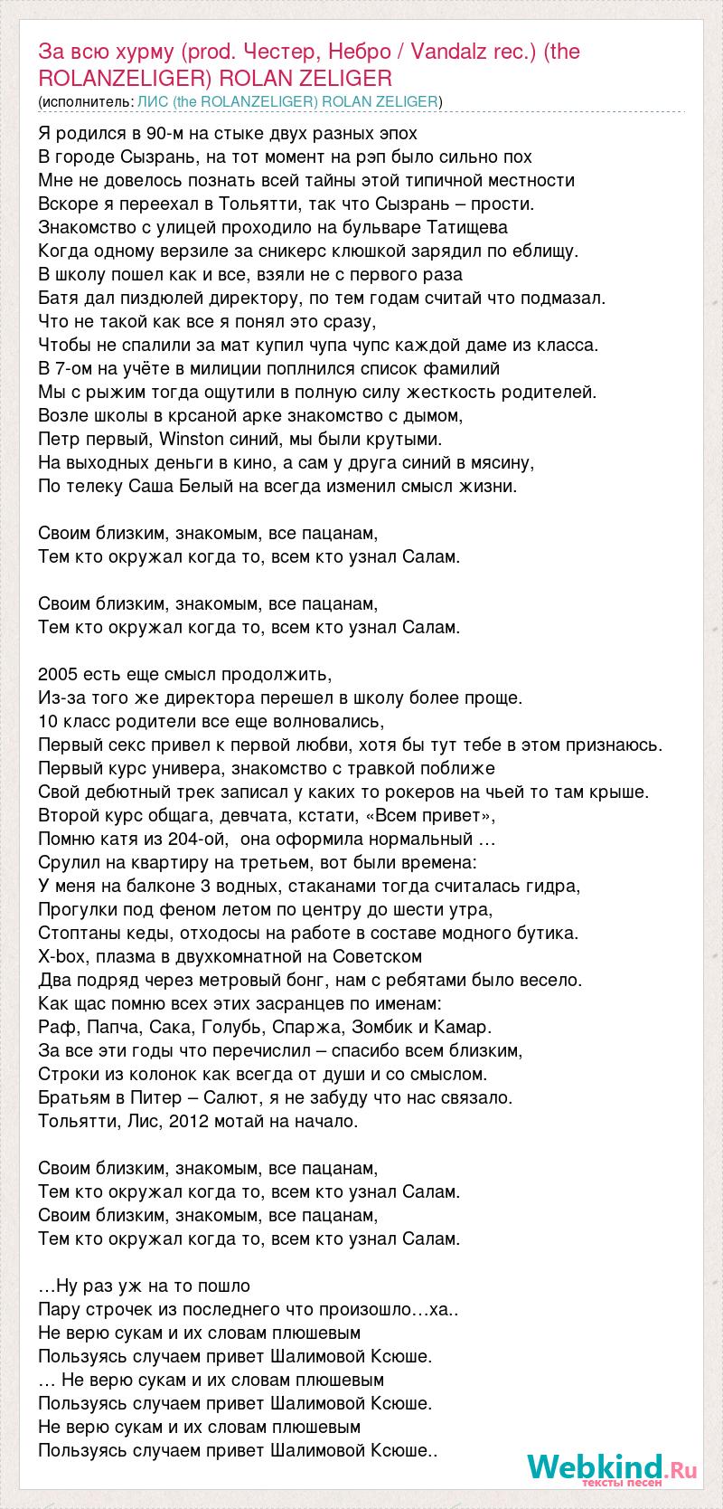 Главная→Исполнители→ЛИС (the ROLANZELIGER) ROLAN ZELIGER→За всю хурму (prod. Честер, Небро / Vandalz rec.) (the ROLANZELIGER) R