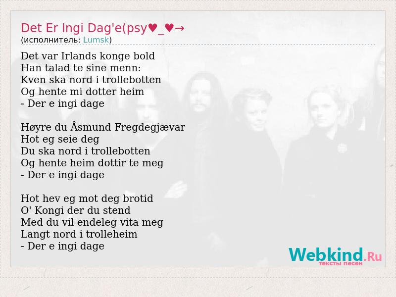 А как ты думаешь, о чем песня "Det Er Ingi Dag'e(psy♥_♥→" ?