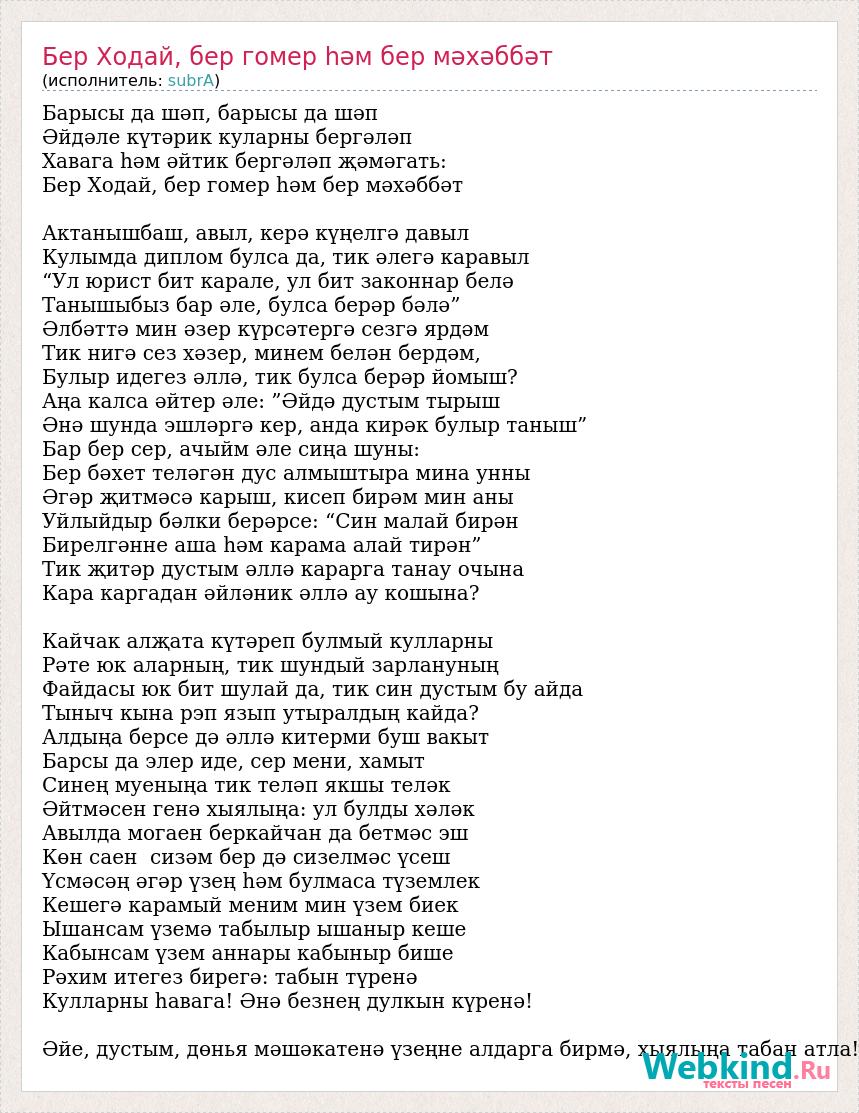 А как ты думаешь, о чем песня "Бер Ходай, бер гомер һәм бер мәхәббәт" ?