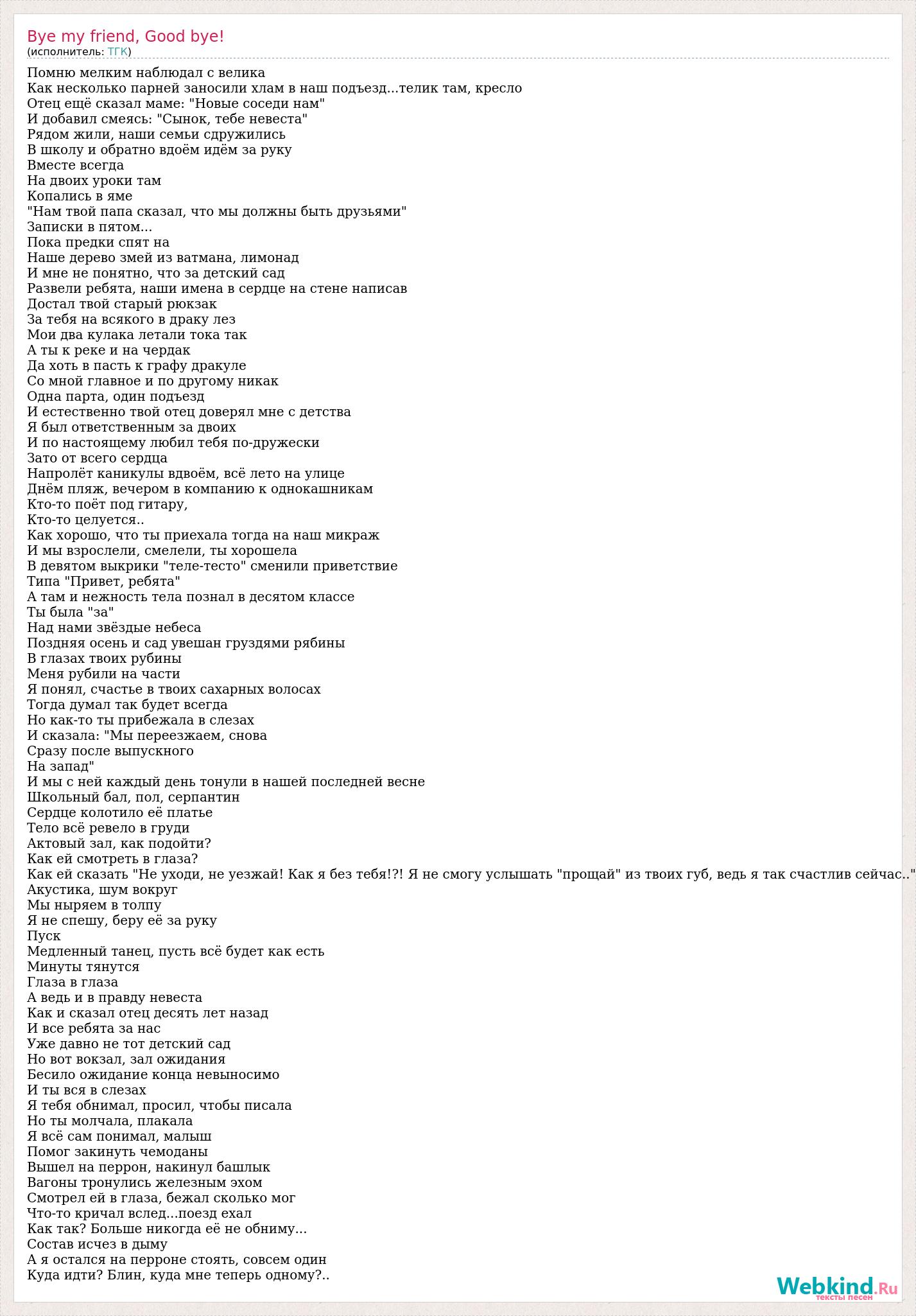 А как ты думаешь, о чем песня "Bye my friend, Good bye!" ?