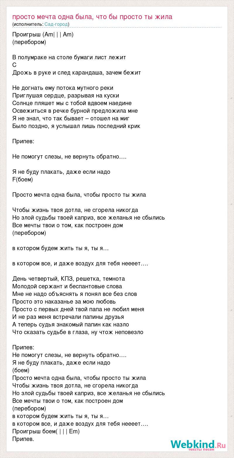 А как ты думаешь, о чем песня "Просто мечта одна была, что бы просто ты жила" ?