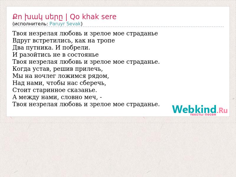 А как ты думаешь, о чем песня "Քո խակ սերը | Qo khak sere" ?