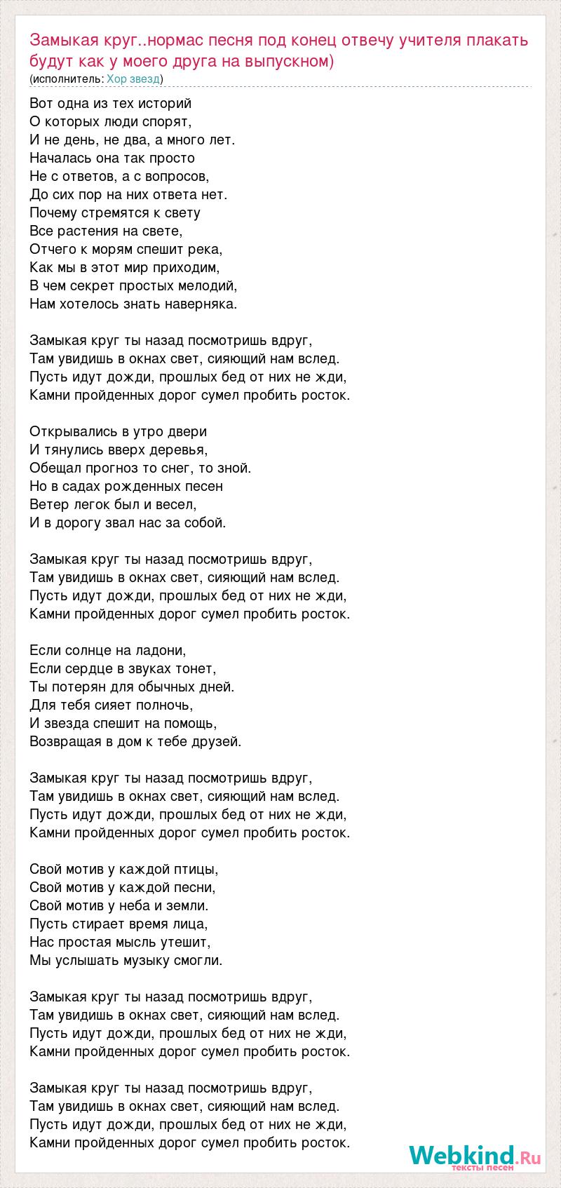 Замыкая круг..нормас песня под конец отвечу учителя плакать будут как у моего д