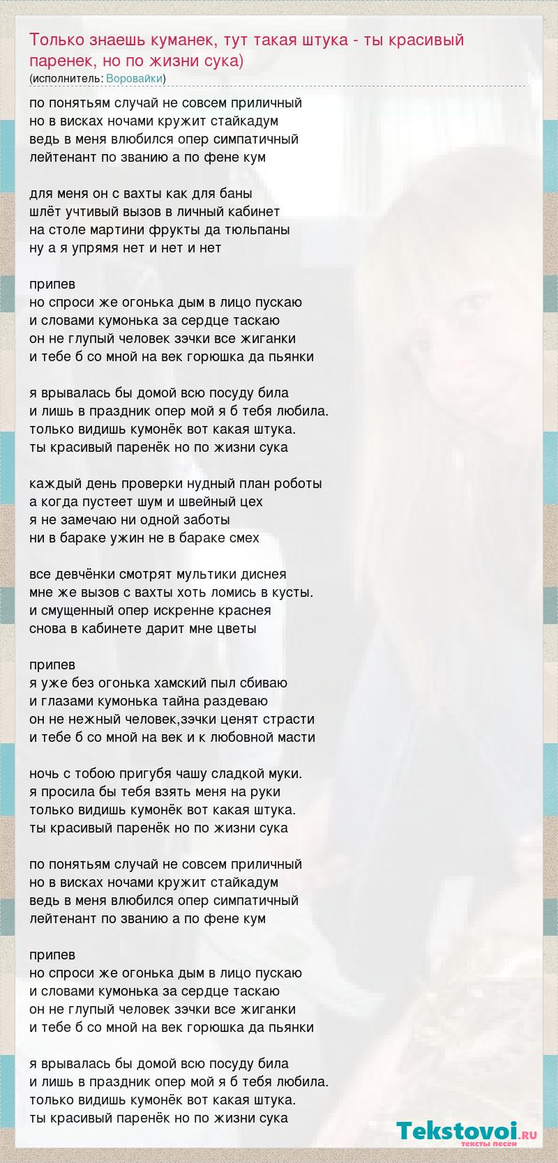 Главная→Исполнители→Воровайки→Только знаешь куманек, тут такая штука - ты красивый паренек, но по жи
