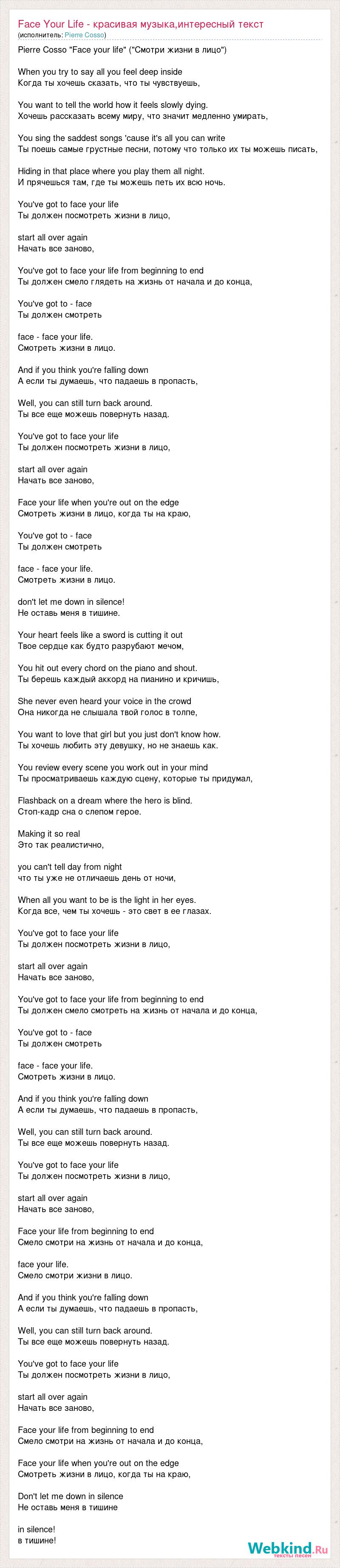 Face Your Life - красивая музыка,интересный текст