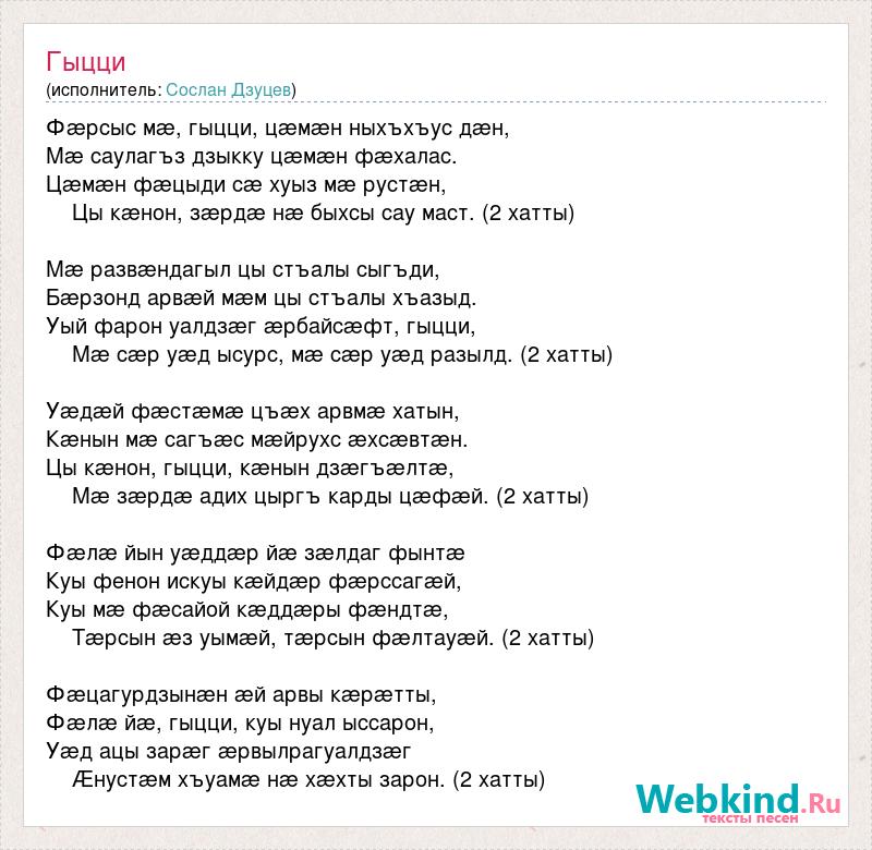 Мæ сæр уæд ысурс, мæ сæр уæд разылд. (2 хатты)