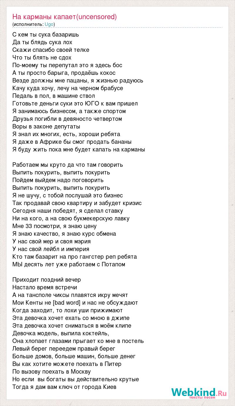 А как ты думаешь, о чем песня "На карманы капает(uncensored)" ?