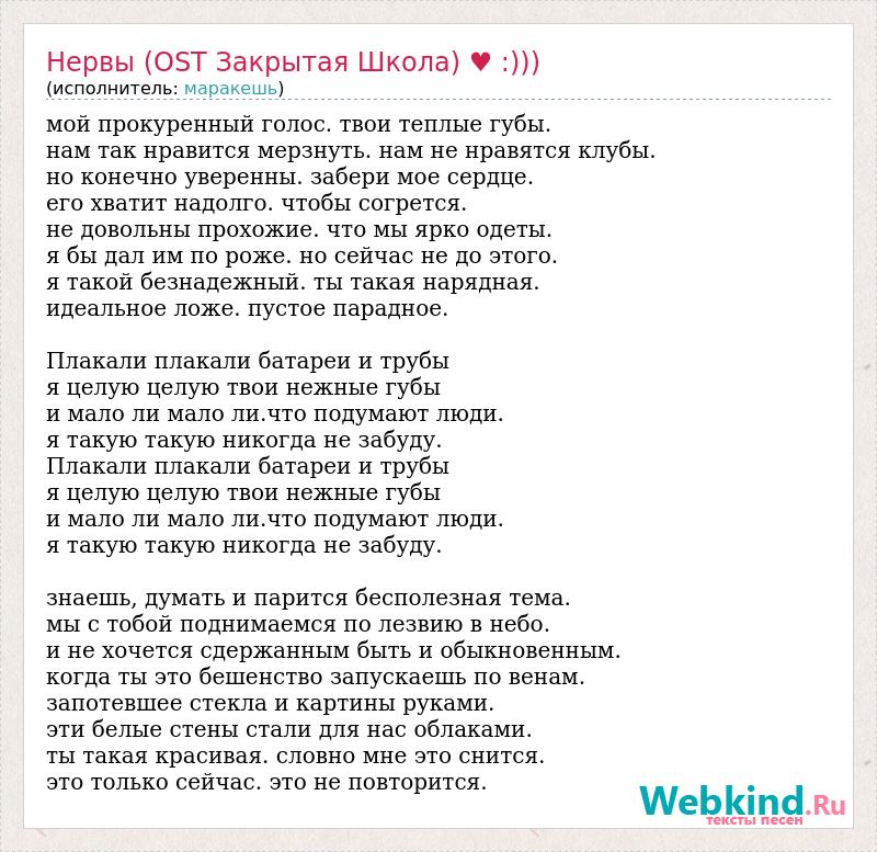 А как ты думаешь, о чем песня "Нервы (OST Закрытая Школа) ♥ :)))" ?