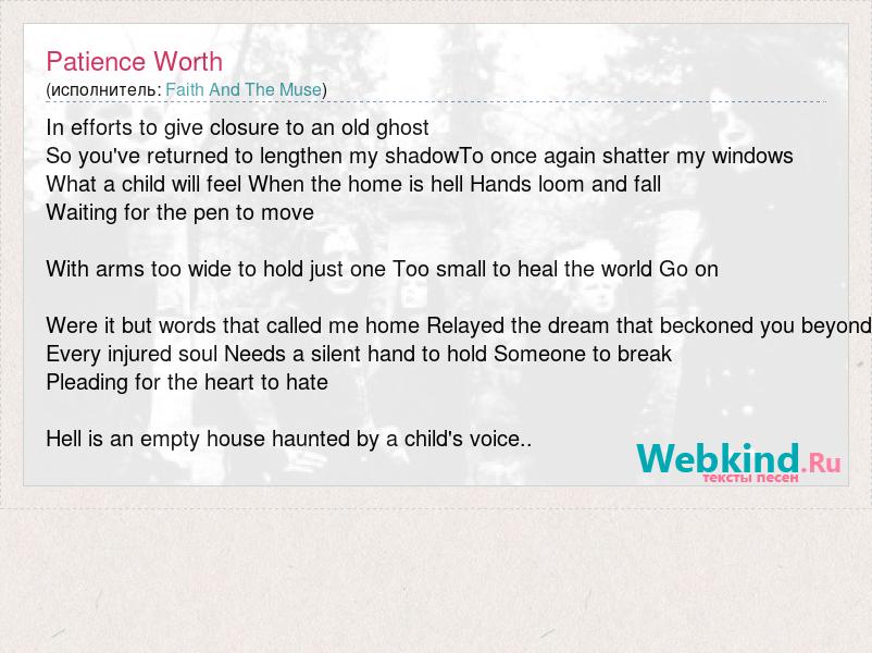 А как ты думаешь, о чем песня "Patience Worth" ?