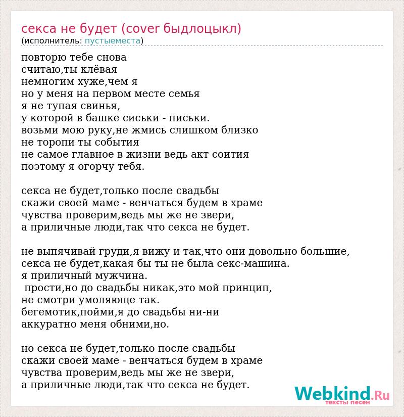 А как ты думаешь, о чем песня "Секса не будет (cover быдлоцыкл)" ?