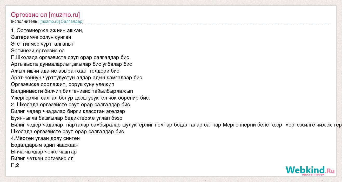 А как ты думаешь, о чем песня "Оргээвис ол [muzmo.ru]" ?