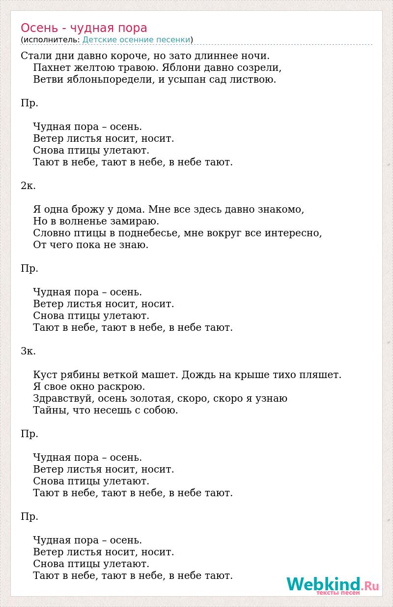 А как ты думаешь, о чем песня "Осень - чудная пора" ?