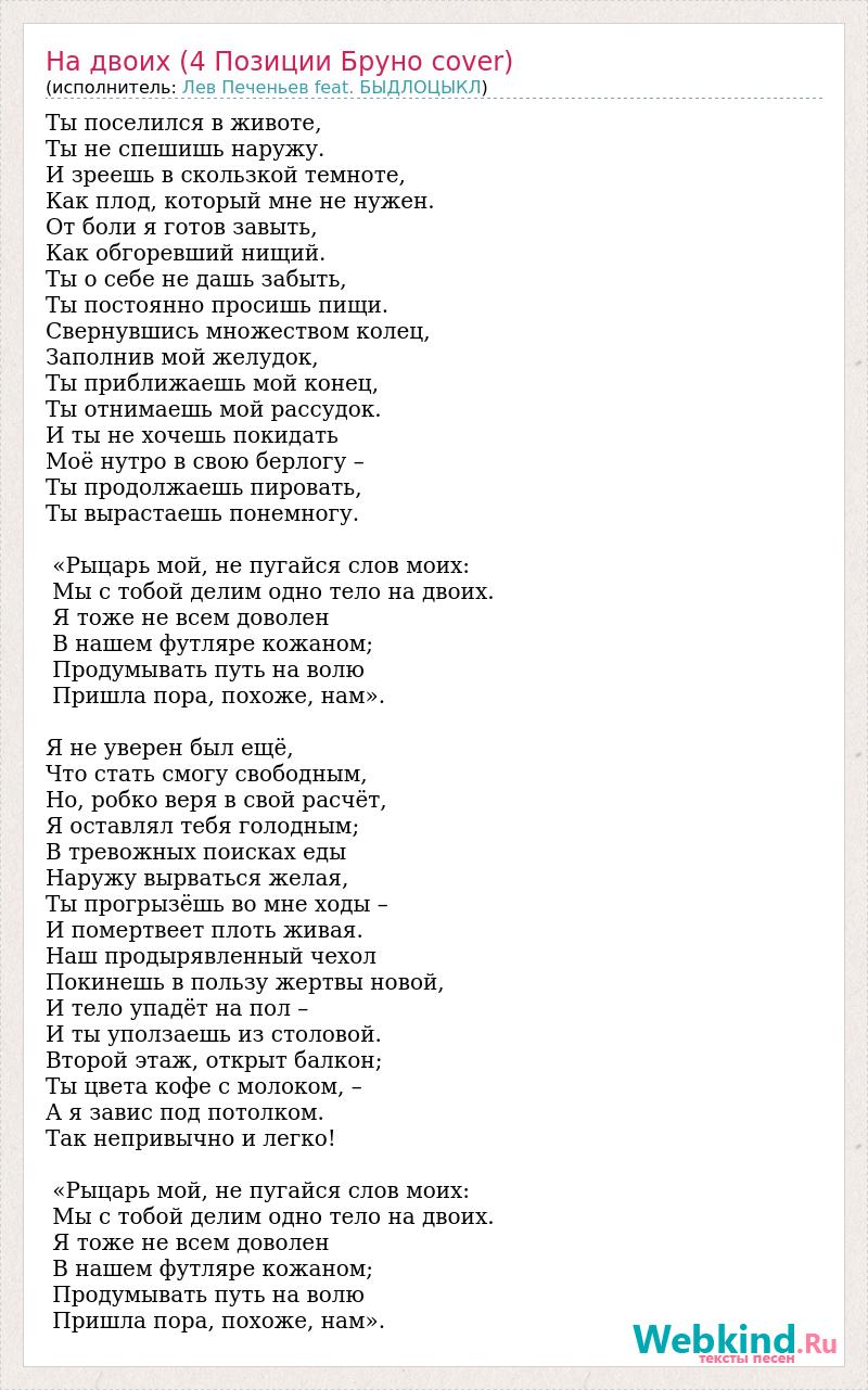 А как ты думаешь, о чем песня "На двоих (4 Позиции Бруно cover)" ?