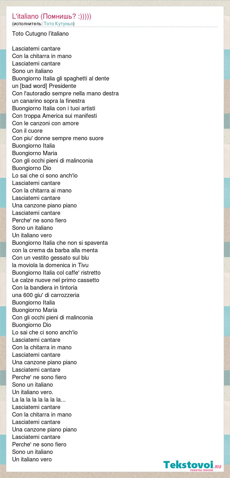 А как ты думаешь, о чем песня "L'italiano (Помнишь? :)))))" ?