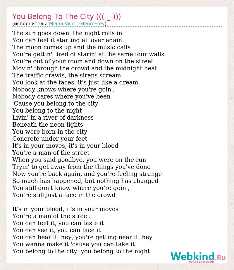 А как ты думаешь, о чем песня "You Belong To The City (((-_-)))" ?