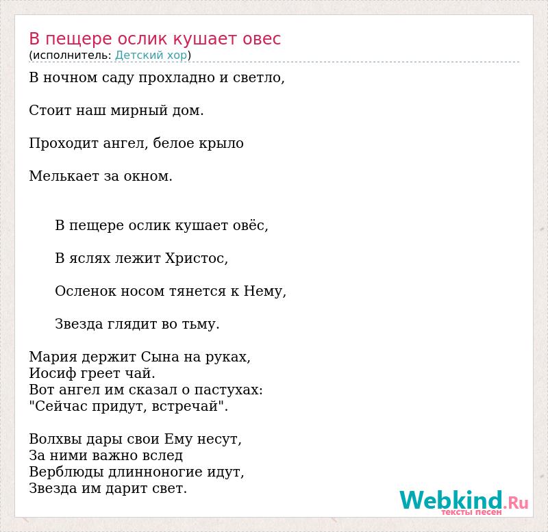 А как ты думаешь, о чем песня "В пещере ослик кушает овес" ?