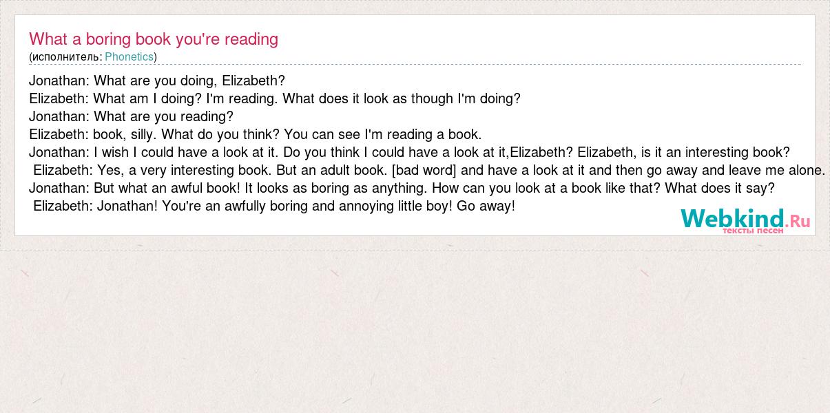 А как ты думаешь, о чем песня "What a boring book you're reading" ?