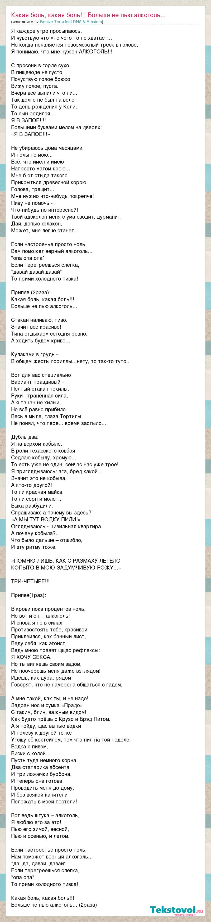 Главная→Исполнители→Белые Тени feat DN8 & Emsiom→Какая боль, какая боль!!! Больше не пью алкоголь...