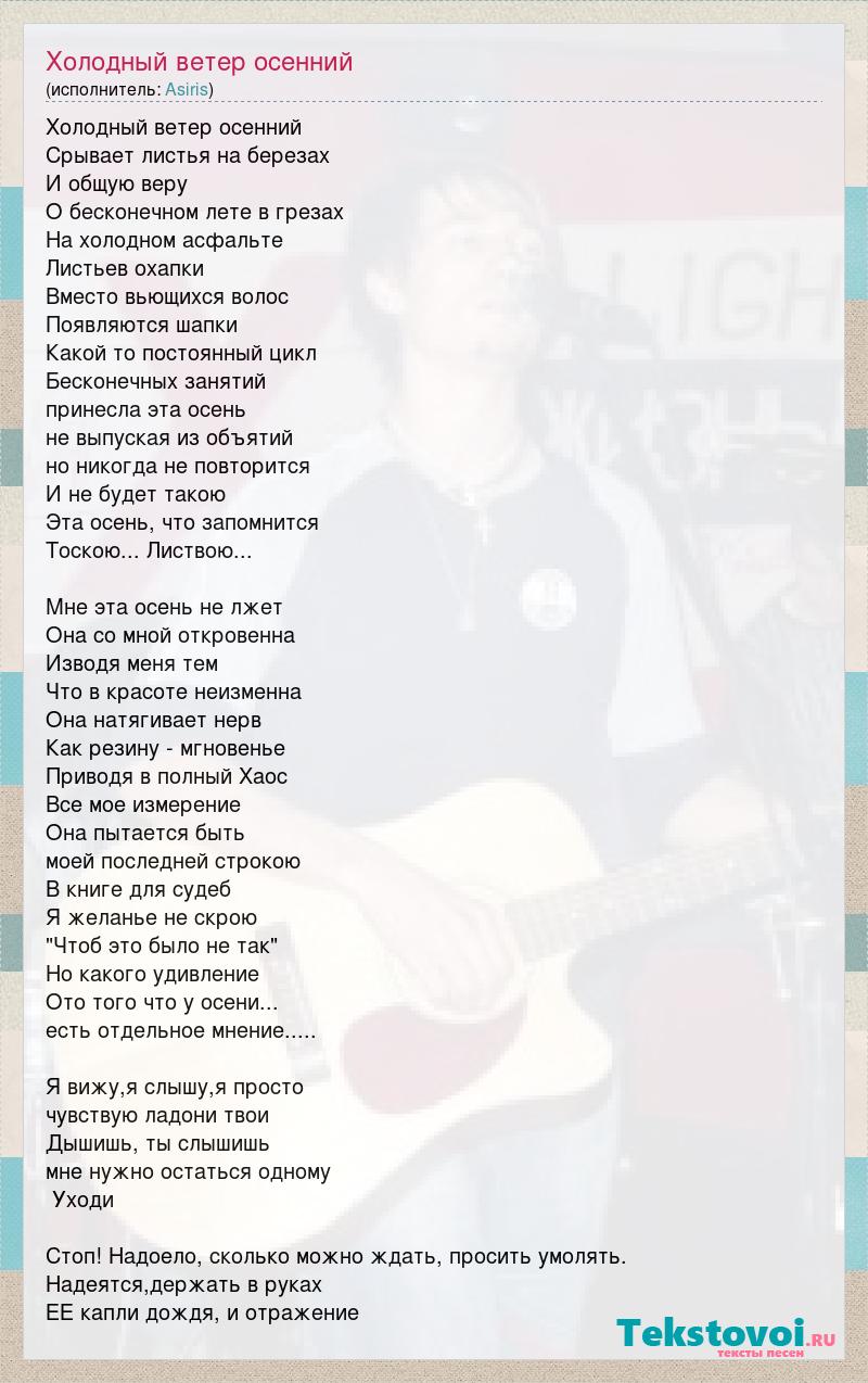 А как ты думаешь, о чем песня "Холодный ветер осенний" ?