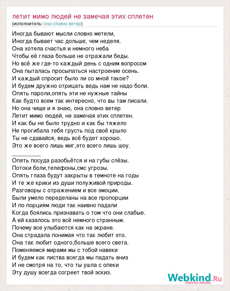 А как ты думаешь, о чем песня "Летит мимо людей не замечая этих сплетен" ?