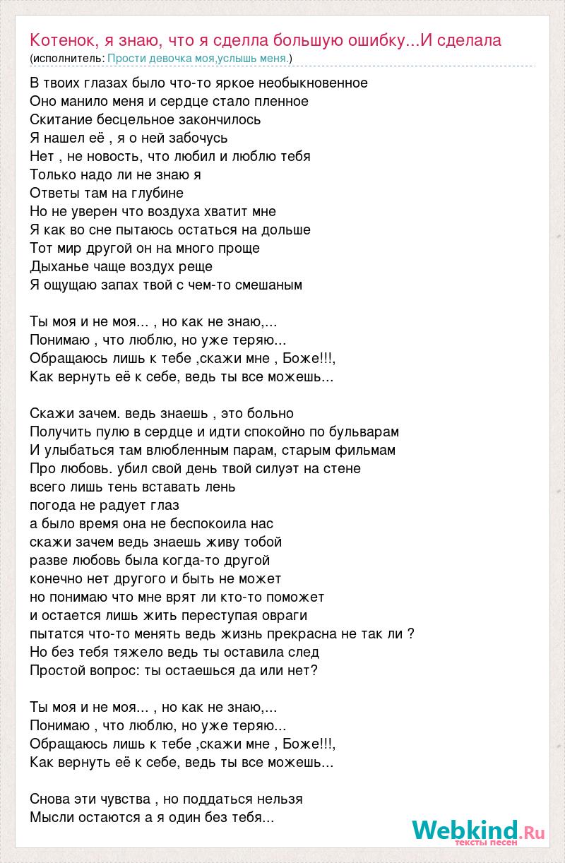 Главная→Исполнители→Прости девочка моя,услышь меня.→Котенок, я знаю, что я сделла большую ошибку...И сделала