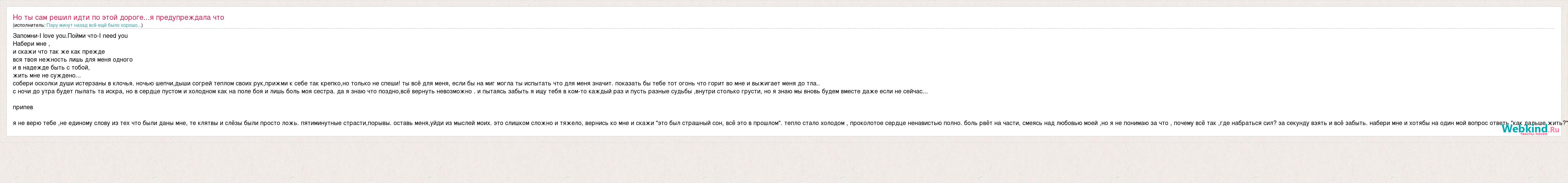 Главная→Исполнители→Пару минут назад всё ещё было хорошо...→Но ты сам решил идти по этой дороге...я предупреждала что обернётся всё именно т