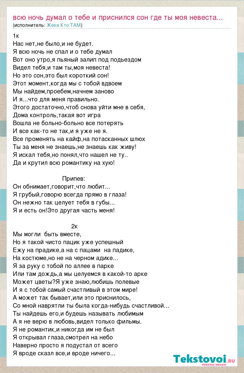 Всю ночь думал о тебе и приснился сон где ты моя невеста...