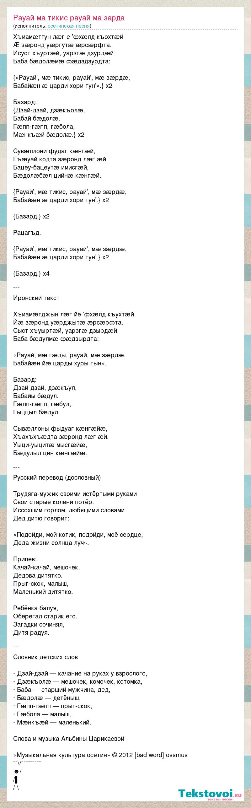 «Музыкальная культура осетин» © 2012 [bad word] ossmus