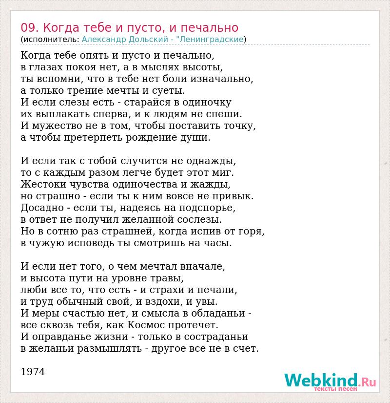 А как ты думаешь, о чем песня "09. Когда тебе и пусто, и печально" ?