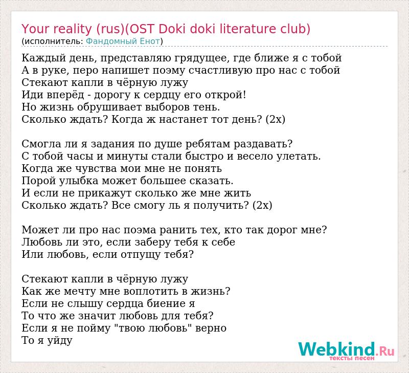 А как ты думаешь, о чем песня "Your reality (rus)(OST Doki doki literature club)" ?