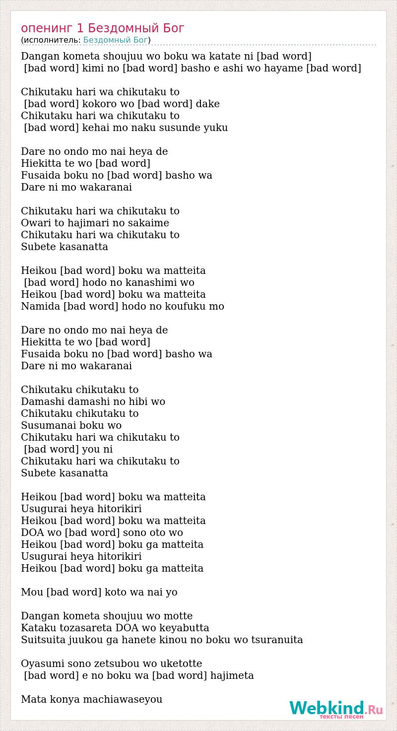 А как ты думаешь, о чем песня "Опенинг 1 Бездомный Бог" ?
