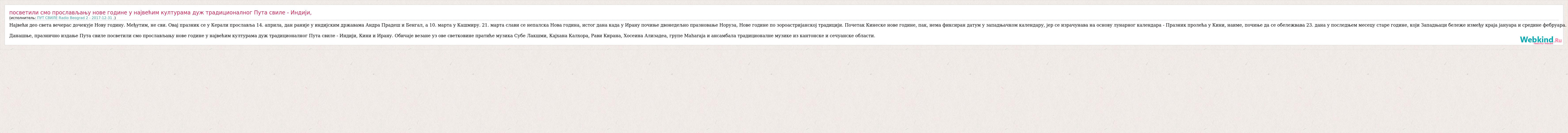 Главная→Исполнители→ПУТ СВИЛЕ Radio Beograd 2 - 2017-12-31 .→Посветили смо прослављању нове године у највећим културама дуж традици