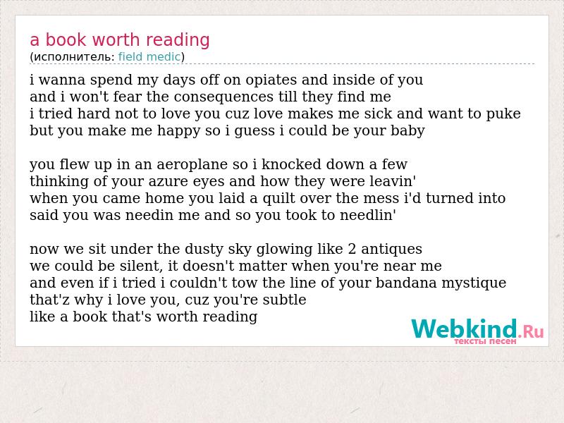А как ты думаешь, о чем песня "A book worth reading" ?