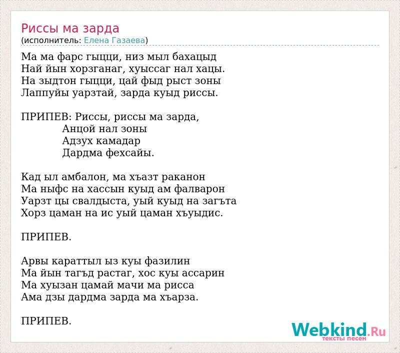 ПРИПЕВ: Риссы, риссы ма зарда,