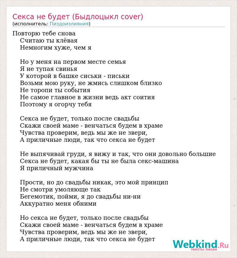А как ты думаешь, о чем песня "Секса не будет (Быдлоцыкл cover)" ?