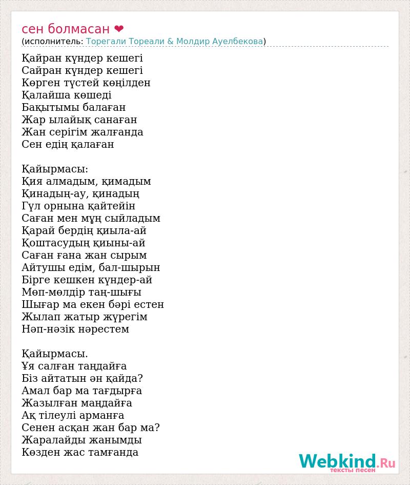 А как ты думаешь, о чем песня "Сен болмасан ❤" ?