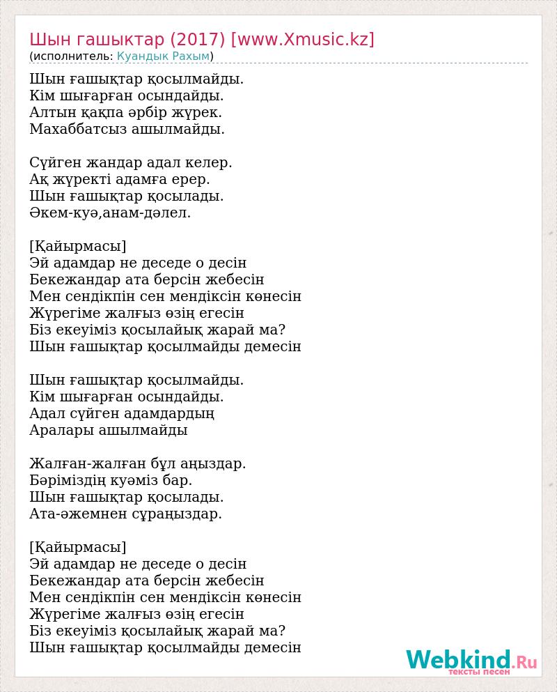 А как ты думаешь, о чем песня "Шын гашыктар (2017) [www.Xmusic.kz]" ?