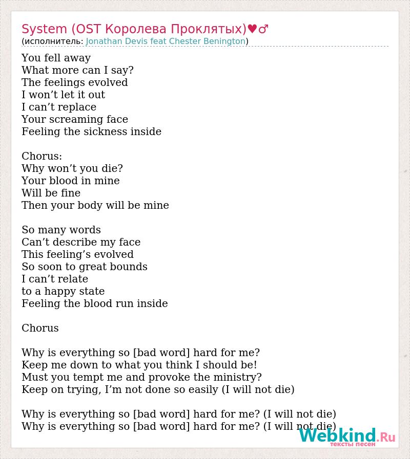 А как ты думаешь, о чем песня "System (OST Королева Проклятых)♥♂" ?