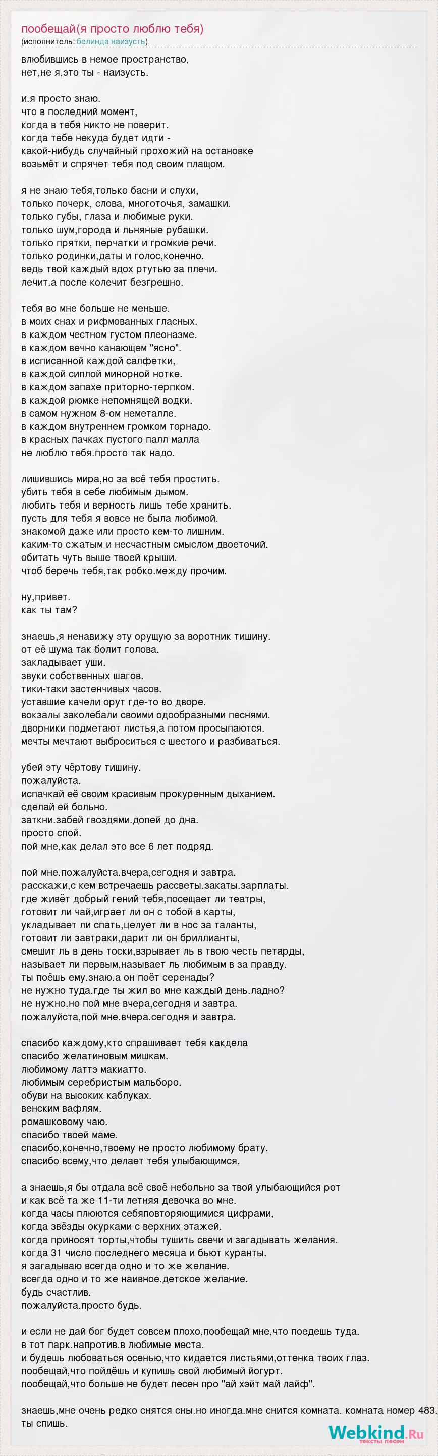 А как ты думаешь, о чем песня "Пообещай(я просто люблю тебя)" ?