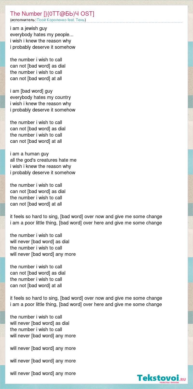 i am a jewish guy everybody hates my people... i wish i knew the reason why i probably deserve it somehow the number i wish to call can not be completed as dial the number i wish to call can not be completed at all i am a russian guy everybody hates my country i wish i knew the reason why i probably deserve it somehow the number i wish to call can not be completed as dial the number i wish to call can not be completed at all i am a human guy all the god's creatures hate me i wish i knew the reason why i probably deserve it somehow the number i wish to call can not be completed as dial the number i wish to call can not be completed at all it feels so hard to sing, yeah come over now and give me some change i am a poor little thing, yeah come over here and give me some change the number i wish to call will never be completed as dial the number i wish to call will never be completed any more the number i wish to call can not be completed as dial the number i wish to call can not be completed at all it feels so hard to sing, yeah come over now and give me some change i am a poor little thing, yeah come over here and give me some change the number i wish to call will never be completed as dial the number i wish to call will never be completed any more will never be completed any more will never be completed any more will never be completed any more