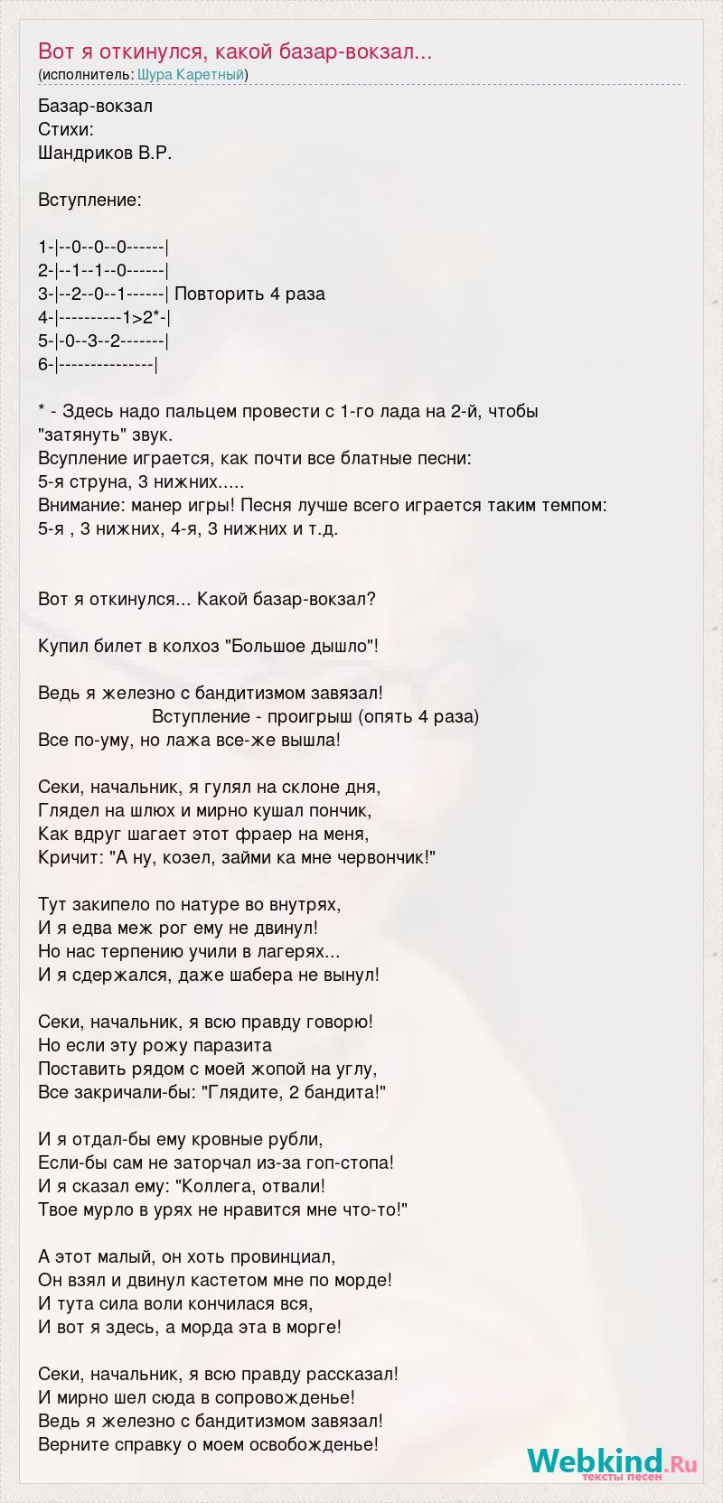 А как ты думаешь, о чем песня "Вот я откинулся, какой базар-вокзал..." ?